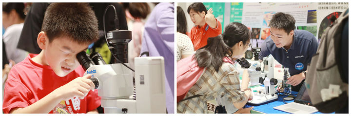 明美為本次活動帶來了生物顯微鏡ML11體視顯微鏡MZ62兩臺顯微鏡體驗, 讓學(xué)生和家長們親身體檢,顯微鏡下的植物和生物微觀“新視界”是什么樣子,不僅以優(yōu)良的操作體驗收獲了很多新粉絲,更以生動有趣的成像激發(fā)了學(xué)生對科學(xué)技術(shù)的興趣。