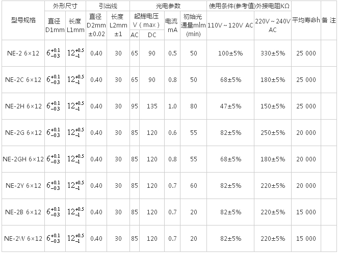 氖燈規(guī)格
