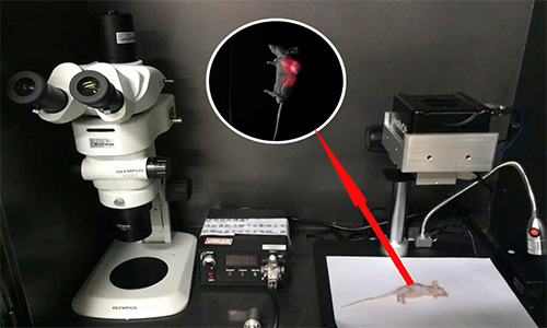 檢測標記物在帶腫瘤小鼠的各器官和腫瘤部位的分部情況,封閉的暗室設計,紅外和明場的觀測可隨時轉換,結合軟件的偽彩處理,實現腫瘤定位