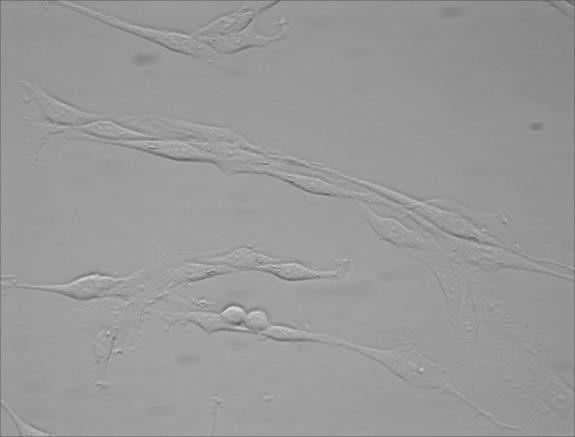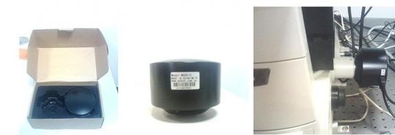 這次的相機(jī)采用簡(jiǎn)易紙盒包裝(如圖),沒(méi)有多少防震措施。體積比上次試用的相機(jī)要大,重量也更重,外形和我的自用相機(jī)很像,很有親切感。黑色圓柱形機(jī)身上貼有名牌、型號(hào)、串號(hào)、“制冷”、“數(shù)據(jù)”等貼紙。相機(jī)與顯微鏡C口匹配(如圖),安裝過(guò)程輕松完成。相機(jī)通過(guò)USB直接連接電腦,方便快捷。而且即使在使用過(guò)程中連接線不小心被碰掉,也沒(méi)有造成故障,重新插上即可。需要占用三個(gè)USB口:一個(gè)用于數(shù)據(jù)傳輸,一個(gè)用于制冷,還有一個(gè)用來(lái)插軟件狗。拍攝軟件的安裝一次成功,但在安裝驅(qū)動(dòng)時(shí),發(fā)現(xiàn)光盤內(nèi)實(shí)際的文件名與說(shuō)明書上的不符。從硬件參數(shù)上來(lái)看,該相機(jī)的芯片像素尺寸3.4微米,共500萬(wàn)像素,冷卻至室溫下10度,是一個(gè)主要用于高分辨明視野的配置。根據(jù)我的專業(yè)方向,本評(píng)測(cè)主要從細(xì)胞研究的角度來(lái)進(jìn)行。