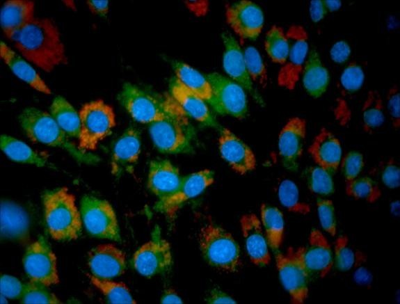 自動(dòng)相機(jī)的像素尺寸較大,制冷到室溫下10度,價(jià)格約$8000。相機(jī)安裝在同一臺(tái)顯微鏡的不同端口,所有的圖片都直接來(lái)自采集軟件,未經(jīng)任何處理。在單色明場(chǎng)的拍攝上,明美相機(jī)的成像水平與自用相機(jī)接近。在熒光的拍攝上,明美相機(jī)的靈敏度略低(比自用相機(jī)需要更長(zhǎng)的曝光時(shí)間),但結(jié)果不錯(cuò),處理后應(yīng)當(dāng)能接近自用相機(jī)。