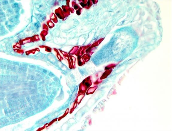 圖7玉米根縱切,40×。調(diào)整下曲線,效果好很多。