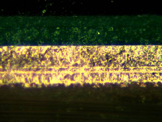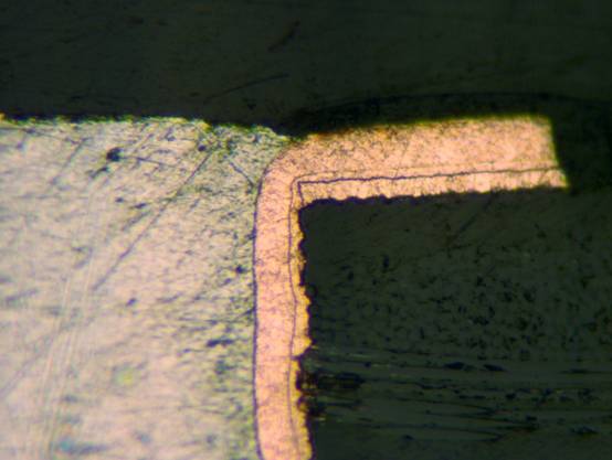 PCB板在檢測(cè)過程中一般需檢測(cè)的是鍍銅層,綠油層以及玻纖等,在這過程中鍍銅層及玻纖可以使用明場(chǎng)觀察,而綠油層卻需要使用暗場(chǎng)觀察。應(yīng)深圳某公司的要求,我司為其推薦了MJ33+MC50-N。