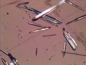 因為透明化學結晶體一般都具有雙折射性的光學特點,因此在對應微觀觀察的部分一般采用熒光顯微鏡|顯微鏡攝像頭|顯微鏡接口來對應檢測分析。華南理工大學化學化工學院的老師提供的結晶體樣品是比較典型的結晶樣品,MD30和MD90實拍的圖片效果如下:
